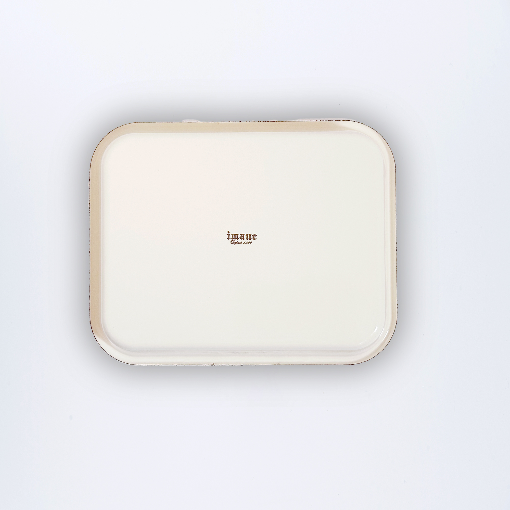 【imane premier】クリーム地にピンクの吹きが優しいバット。下味や揚げ物の衣つけ、調味料や野菜を並べておく時に大活躍。専用の道具があるだけで普段のお料理も楽しくなります。ホーロー製のためオーブンや直火にも対応しています。バットを使ってオーブンでできるちぎりパンやプリン、直接火にかられるのでグラタンやパイシチューは焼くところからバット1枚で行えます。フタが付属しているため調理後に冷蔵庫で保存も◎。そのままテーブルに出せる可愛らしいデザインなので大皿料理やホームパーティーにもぴったり。においの付きにくいホーロー製で清潔に。道具も、器もこれひとつ。
